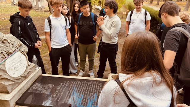 2025. október 13-án iskolánk nyolcadikos tanulóival Budapesten a Fiumei úti sírkertben jártunk. A Nemzeti Emlékezetpedagógiai Program keretében tartott foglalkozáson híres magyar személyiségek, művészek, politikusok síremlékei között idéztük fel a magyar történelem és művészet nagy pillanatait. A szép őszi időben elsétáltunk a Hősök terére és Városligetbe is, majd egy kellemes Aréna plázában tett látogatással zártuk a Pesti kirándulást.