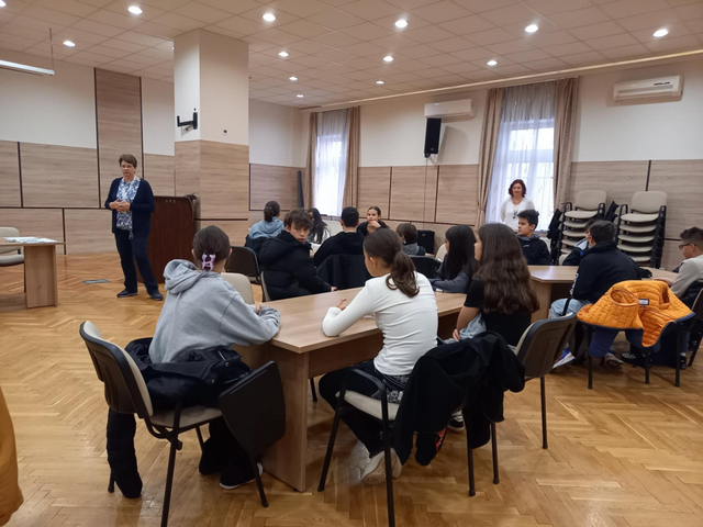 A nyolcadik osztályos tanulók 2025. november 7-én az iskolai könyvtárban vettek részt a Nemzeti Adó- és Vámhivatal diákprogramján. A hivatal munkatársa, Barlai Krisztina Katalin az internetes vásárlás veszélyeiről, az illegális kereskedelem következményeiről tartott a diákok aktív közreműködésével érdekes foglalkozást.