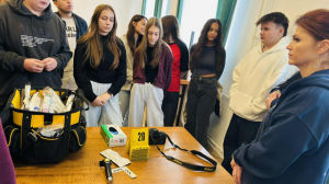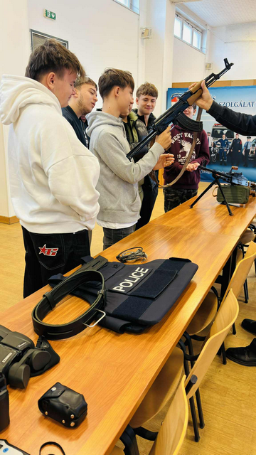 2025. november 10-én pályaorientációs foglalkozás keretében látogattunk el a Pécsi Rendőr-főkapitányságra a pályaválasztás előtt álló nyolcadikos osztályokkal. A programon széleskörű tájékoztatás mellett, lehetőségük nyílt a diákoknak megismerkedni a rendőrség sokrétű munkájával. A gyerekek nagyon érdekesnek találták a nyomozási helyszínelők feladatkörét, eszközeiket is megvizsgálhatták. A fegyveres, védőruházati kiállításon is aktívan részt vehettek a gyerekek, betekintést nyerve az eszközök használatába. Miközben kicsit belebújtak a rendőrök bőrébe, hasznos információkat tudhattak meg a rendőri munka mindennapjairól. Nagy sikere volt a rendőrautó és a drogkereső kutya bemutatónak is. A program végére sok diák kedvet kapott a rendőri hivatáshoz, miközben megtudták, hogy nemcsak középiskolai szinten, hanem érettségi vizsga után, főiskolára jelentkezve is válhat rendőrtiszt belőlük.