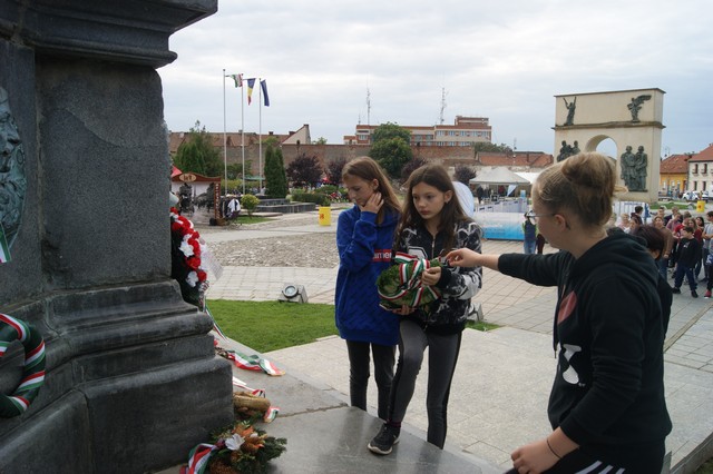 képeket készítettünk a tájról és magunkról. Marosillyén az idegenvezető Bethlen Gábor szülőhelyéről mesélt nekünk, majd Arad felé vettük az utat. Érdeklődve hallgattuk túravezetőnk szavait a tizenhárom aradi vértanúról, majd évfolyamunk három osztálytitkára tiszteletünk jeléül megkoszorúzta az aradi Szabadság-szobrot. Látogatásunk után búcsút vettünk a kísérőnktől és Magyarország felé vettük az irányt.