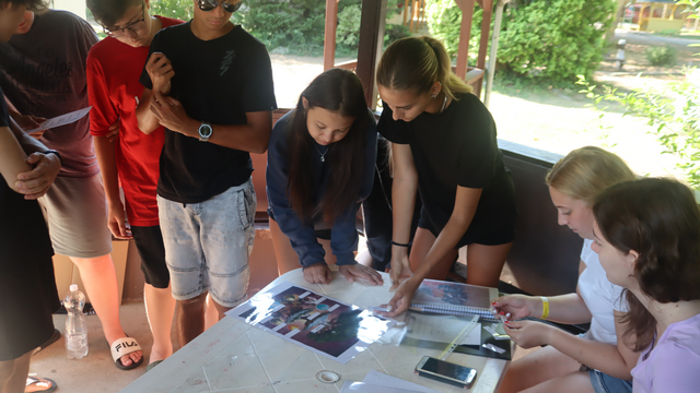Táborunk ötödik napján ötpróbás kihívással találtuk magunkat szemben: fizikai és logikai ügyességünket kihasználva akadálypályát kellett teljesítenünk, íjász képességünket csillogtattuk, viking tekéztünk, valamint a skandináv mitológia isteneivel és a kilenc világával kapcsolatos ismereteinkről adtunk számot. Emellett tovább folytatódtak a Viking TV felvételei, kézmüveskedtünk, foci és röpi meccseken mértük össze tudásunkat az öreg vikingekkel és megmártóztunk tengerünk kellemes vizében. És a tegnap megjelent óriás árbócos hajóról fura vikingek is megjelentek a tábor területén, melyről szerkesztőségünk felvételeket is készített, így látható lesz a holnapi Viking TV műsorában.