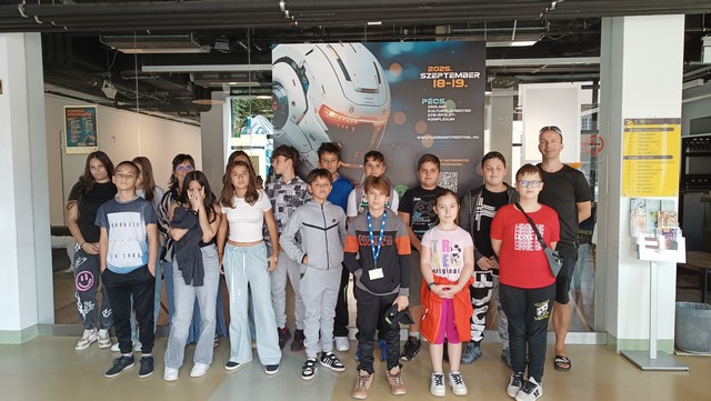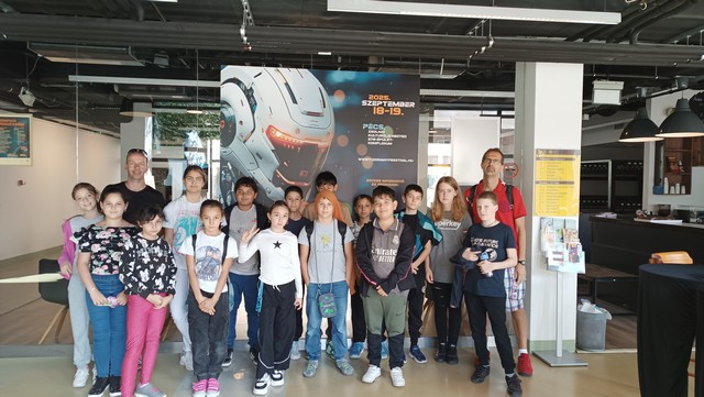 2025. szeptember 18-19-én iskolánk négy osztálya (4.A, 5.A, 6.A és 7.C) is részt vett a Zsolnay Negyedben megrendezésre kerülő XIV. Tudományfesztiválon. A program keretében tanulóink a következő területeken és témákban jutottak érdekes információkhoz illetve próbálhatták ki magukat: hidrogénes bicikli, fotózás, űrprojekt, pneumatika, gokart szimulátor, robot vs. ember, Zöld Egyetem Program, műholdépítés, fenntartható erdőgazdálkodás, robotika, Hunor Program.