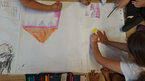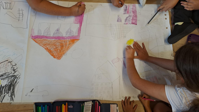 Rácsodálkoztunk az otthonok és családok sokszínűségére. Beszélgettünk a jó otthonról, felidéztük a napi rutin otthonhoz köthető részeit némajátékkal. Csoportosítottuk az otthon érzékszervekkel tapasztalható jellemzőit. Álomnappalit alkottunk kollázs technikával. Majd végül csoportmunkában családok alapultak és az iskola különböző szegleteiben kialakították elképzelt otthonukat.