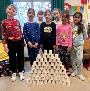 A 70. tanítási napon a 2.a osztályos tanulók, meszesi rekord kísérletet tettek, és 70 pohárból próbáltak tornyot építeni. A képek jól mutatják, hogy nagyon ügyesen teljesítették ezt a kihívást.