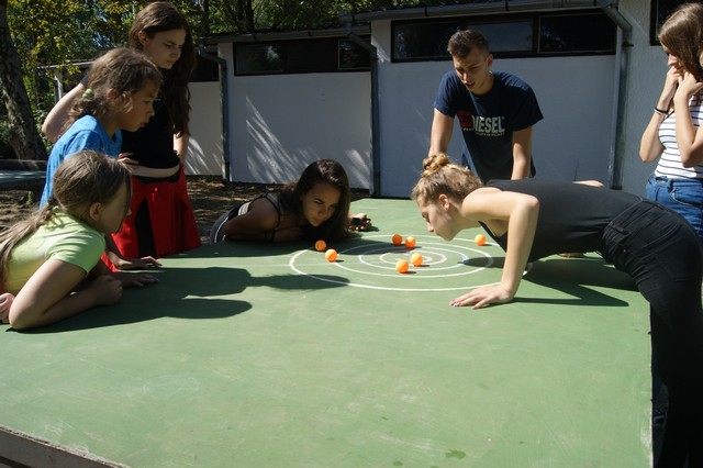 Ahogy egyre melegszik az idő, úgy lesz egyre kellemesebb a Balaton vize, így szabadidőnket leginkább lubickolással töltöttük. Azonban a munka sem maradhatott el. Az előző nap megírt forgatókönyvek alapján elkezdtük filmjeleneteink forgatását. A Hőshatos elnevezésű próbák során a levegő- és szélmanipulációs, a molekuláris manipulációs, a sugárnyaláb manipulációs, a levitációs, az akaratátvitel és tudatkontrolláló képességeink és az emberfeletti intelligenciánk került a középpontba. A délután folyamán kézügyességünket pedig kanálbábu készítéssel és körmön fonással tehettük próbára. Várjuk a következő napi folytatást!