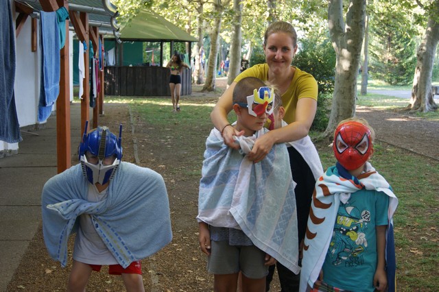 Táborunk ötödik napjának délelőttjét Fenyvesen töltöttük, ahol QR kódos nyomolvasással megtudtuk, hogy filmjeink premierjéhez plakátot szükséges készítenünk, majd belevetettünk magunkat a bazársor rengetegébe. A nagy hőségben délutánunk nagy részét a Balatonban töltöttük, valamint folytattuk filmjeleneteink forgatását. A nap végére befejeződtek az egyéni hőspróbák és elkészült a tábori molinónk is.